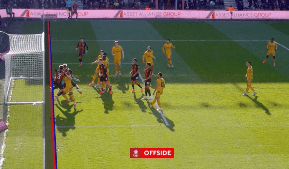 據(jù)報道,當(dāng)值裁判組首先審查了伯恩茅斯球員并未手球和犯規(guī),隨后半自動越位技術(shù)審核是否存在越位情況。