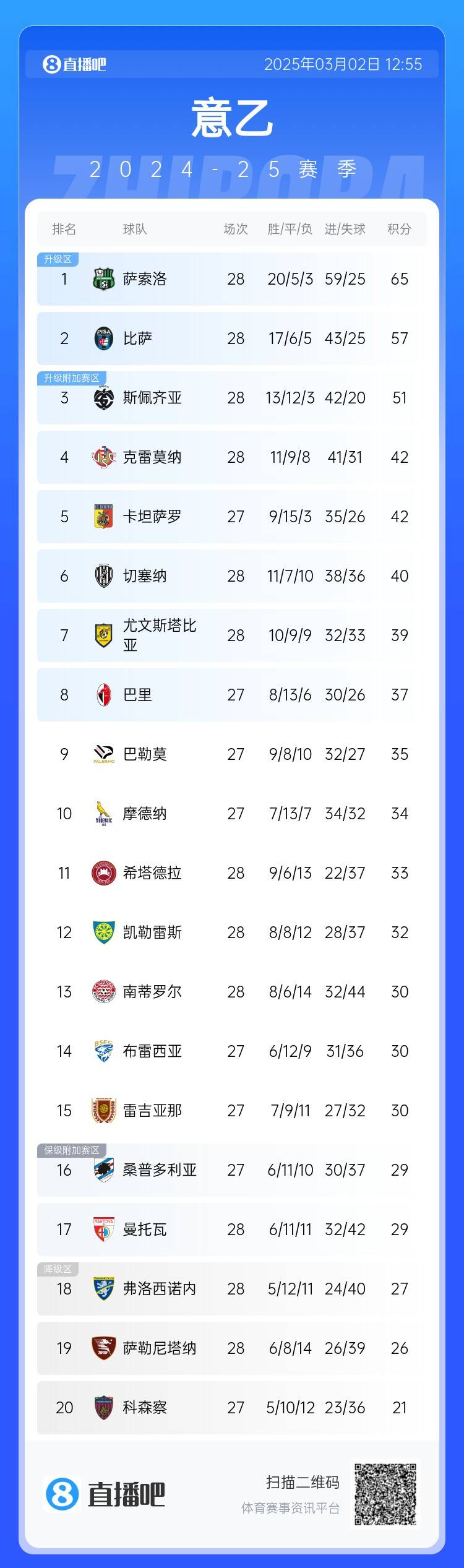 而在直通區(qū)的分數上,薩索洛已經14分領跑直通區(qū),幾乎已經確定了一個直接升級名額。