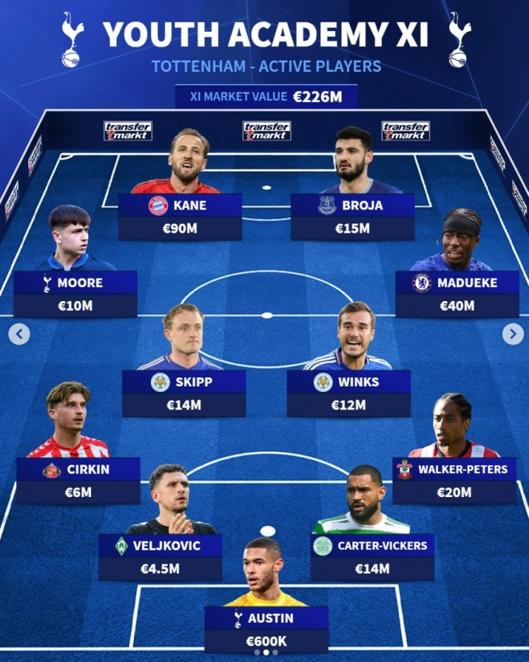 熱刺青訓(xùn)當(dāng)前身價(jià)最貴陣:總身價(jià)2.26億歐元