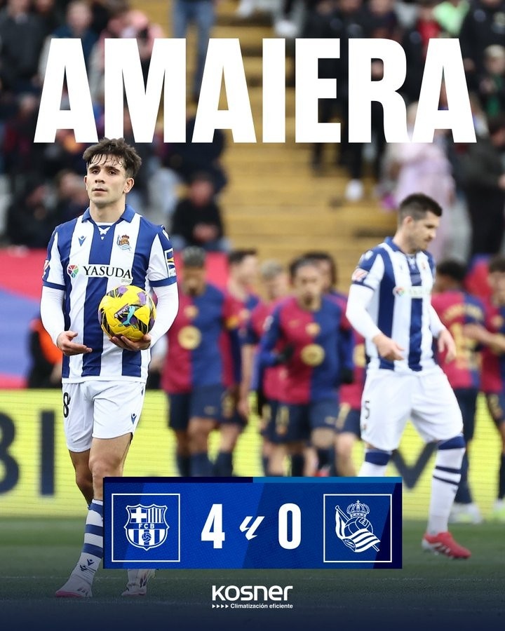 3月3日訊 皇家社會在本輪西甲客場0-4慘敗巴薩,他們?nèi)珗鑫茨芡瓿扇魏紊溟T。