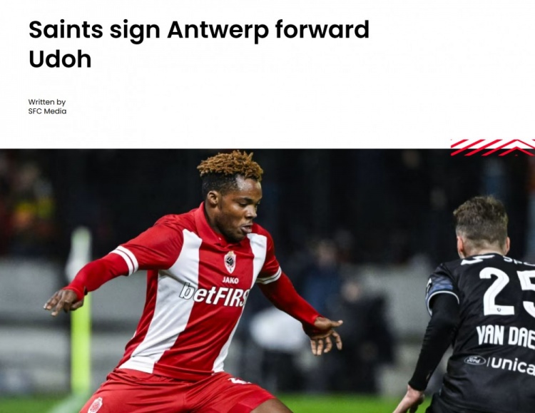2月4日訊 南安普頓官方宣布,俱樂(lè)部已經(jīng)簽下了安特衛(wèi)普的20歲左邊鋒烏多,雙方簽約三年半。