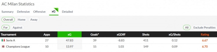 (賽季預計破門數(shù)的表現(xiàn),及個人成績。對比之下國米的預計進球數(shù)比米蘭多十個)