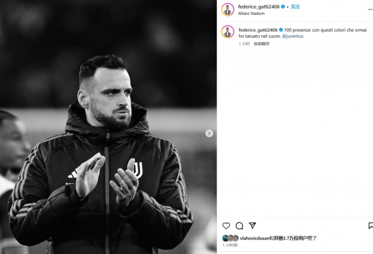 3月4日訊 意甲第27輪,尤文2-0維羅納,加蒂上演了尤文生涯100場(chǎng)里程碑。賽后加蒂更新了社媒。