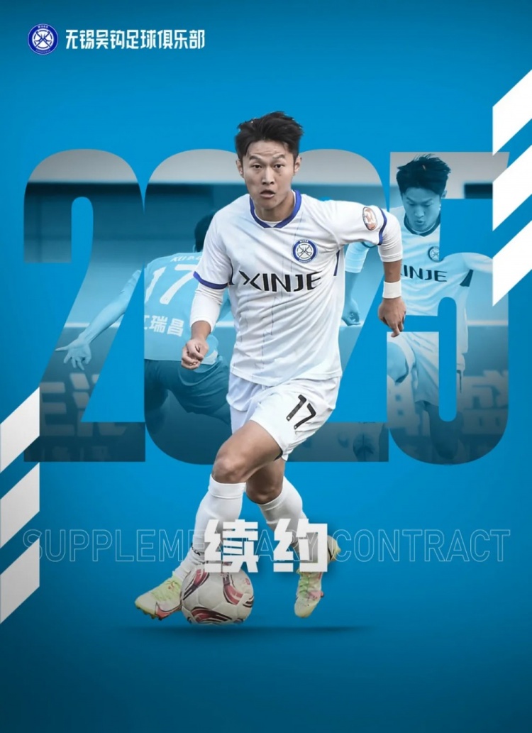 我們在此鄭重宣布,經(jīng)雙方協(xié)商一致,無錫吳鉤足球俱樂部與球員胡升嘉完成續(xù)約。2025賽季,他將繼續(xù)為無錫而戰(zhàn)!