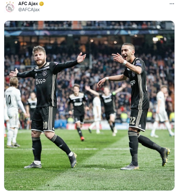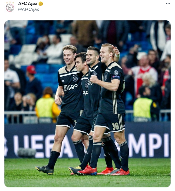 6年前的今天,歐冠1/8決賽次回合,皇馬主場1-4慘敗阿賈克斯,阿賈克斯青年軍淘汰皇馬殺入八強。阿賈克斯官推曬出多圖,重溫這場經典戰(zhàn)役。