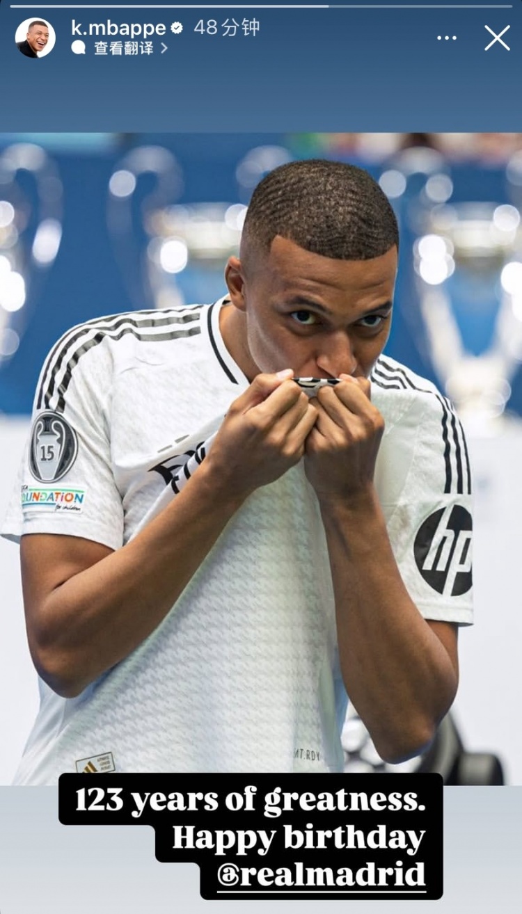 3月7日訊 皇馬成立于1902年3月6日,昨天是皇馬成立123周年的紀念日。姆巴佩也更新了社媒,向俱樂部送上祝賀。姆巴佩曬出自己親吻隊徽的照片,并寫道:123年的偉大歷史,生日快樂,皇馬。 標簽: 足球 西甲 皇家馬德里 姆巴佩