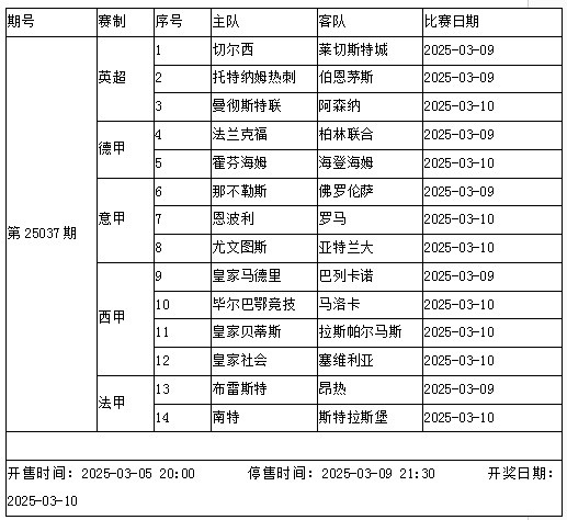 傳足勝負(fù)彩第25037期中不乏焦點(diǎn)賽事,其中曼聯(lián)對(duì)陣阿森納尤為引人關(guān)注。此外,切爾西主場(chǎng)面對(duì)萊切斯特城,尤文與亞特蘭大將在都靈安聯(lián)球場(chǎng)展開對(duì)決,皇馬則德比對(duì)陣巴列卡諾。