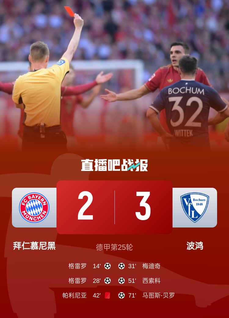 3月9日訊 北京時(shí)間8日晚,德甲第25輪,拜仁主場2-3不敵波鴻。