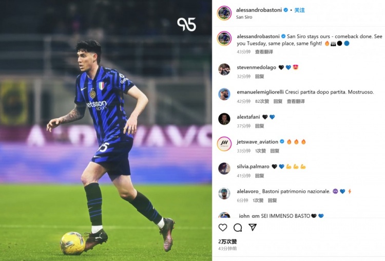 數(shù)據(jù)統(tǒng)計(jì)顯示,巴斯托尼本場(chǎng)貢獻(xiàn)4關(guān)鍵傳球+2射門,此外6次對(duì)抗有5次成功。他也在賽后通過社媒曬出自己的比賽照,并配文:“圣西羅仍然是我們的,逆轉(zhuǎn)成功。同一塊場(chǎng)地,同等的努力奮戰(zhàn),球迷們周二再見!”