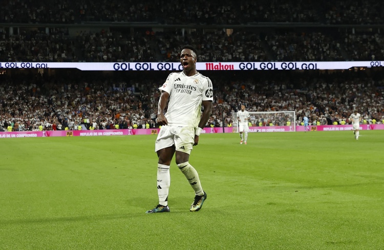 3月10日訊 在本輪西甲聯(lián)賽的一場(chǎng)比賽中,皇馬主場(chǎng)迎戰(zhàn)巴列卡諾,上半場(chǎng)皇馬邊鋒維尼修斯打進(jìn)一球。