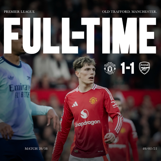 03月10日訊 英超第28輪,曼聯(lián)1-1打平阿森納。