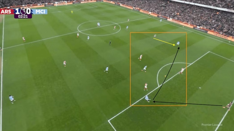 首先,球隊(duì)嚴(yán)格執(zhí)行了阿爾特塔前場高壓的戰(zhàn)術(shù),開場2分鐘的進(jìn)球就是源于前場的局部4打3,從結(jié)果來看球隊(duì)的戰(zhàn)術(shù)效果非常出色。哈弗茨隨后錯(cuò)失單刀的機(jī)會(huì)也是球隊(duì)力拼下來的,可惜沒能形成進(jìn)球。托馬斯下半場的進(jìn)球同樣源自高位攔截,他的破門是從福登的傳球攔下的。