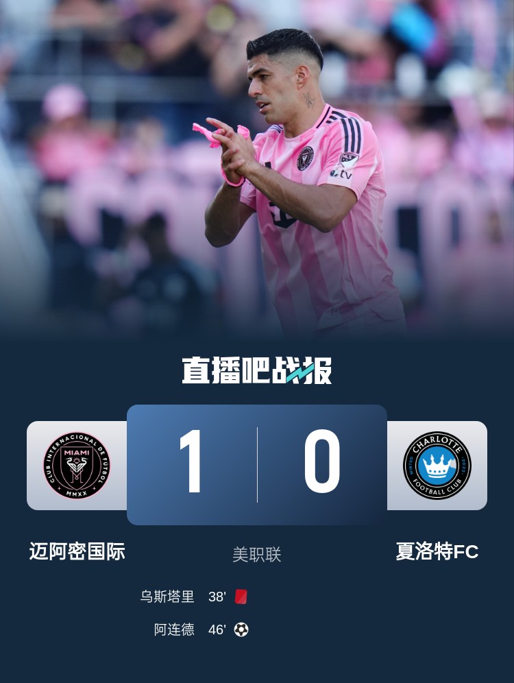 美職聯(lián)本輪邁阿密國際1-0擊敗夏洛特FC,梅西替補(bǔ)未出場(chǎng),阿連德破門,蘇亞雷斯助攻。