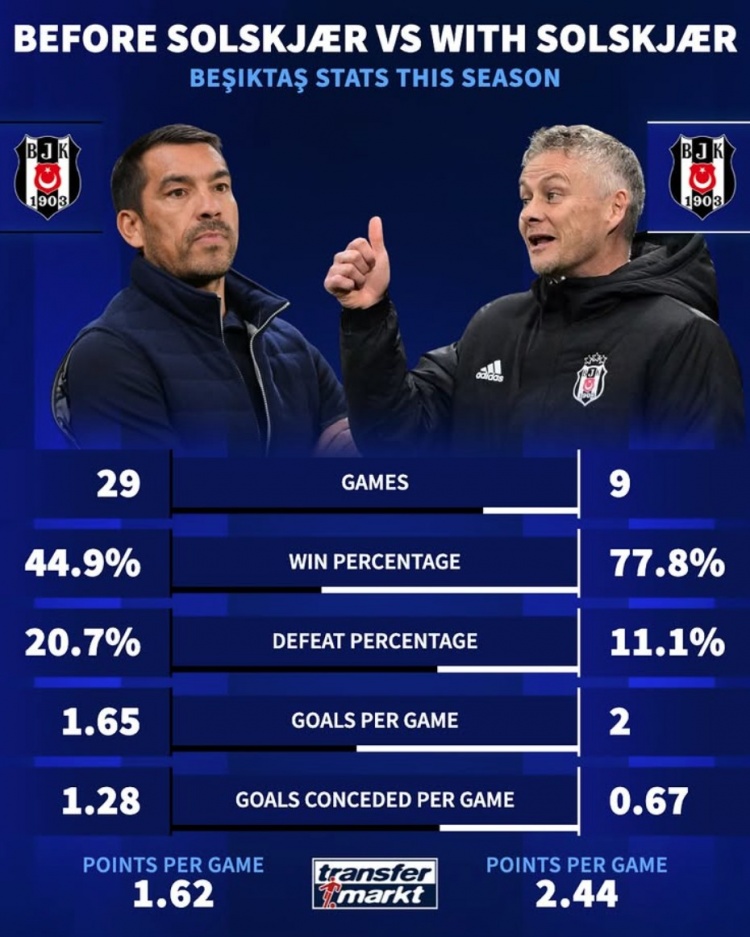 3月10日訊 貝西克塔斯在上輪土超2-0力克開賽利體育,延續(xù)了索帥上任后的出色表現(xiàn)?!掇D(zhuǎn)會(huì)市場》也對比了貝西克塔斯在這位前曼聯(lián)主帥上任前后的關(guān)鍵數(shù)據(jù)。