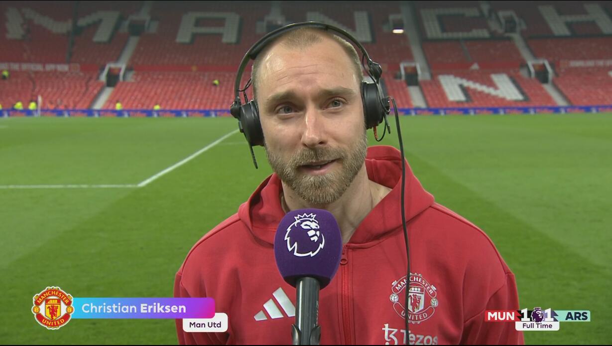 03月10日訊 在今天凌晨剛結(jié)束的英超第28輪,曼聯(lián)主場1-1戰(zhàn)平阿森納的比賽賽后,曼聯(lián)中場大將埃里克森接受了天空體育的采訪。