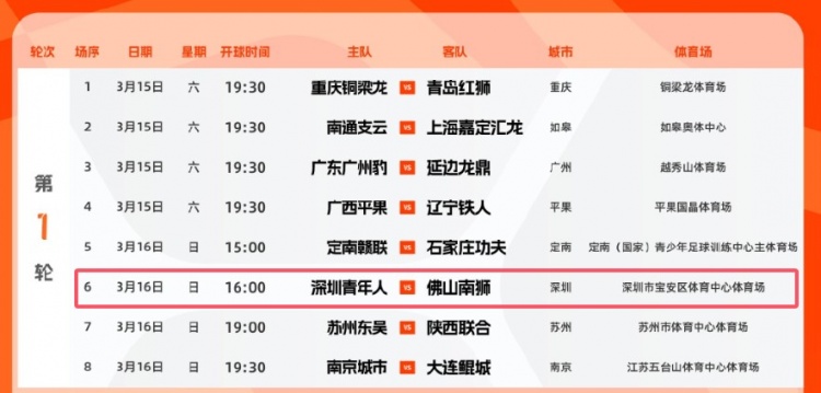 由于主場消防問題,再加上時間緊迫,來不及啟動備用主場以及申請主客對調(diào),中甲第1輪深圳青年人與佛山南獅的比賽可能要被迫延期到6月8號。