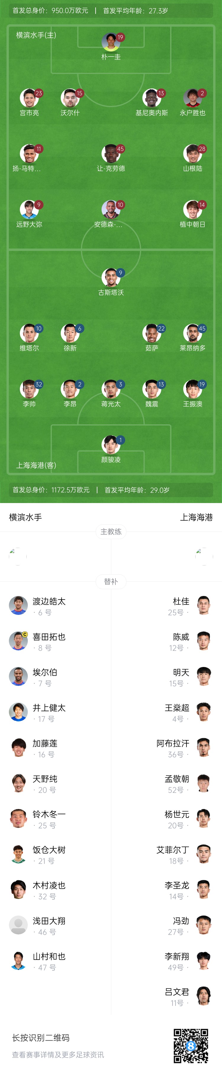 03月11日訊 北京時間18點(diǎn),亞冠精英聯(lián)賽1/8決賽東亞區(qū)次回合,上海海港客場挑戰(zhàn)橫濱水手,賽前官方公布兩隊(duì)首發(fā)陣容。