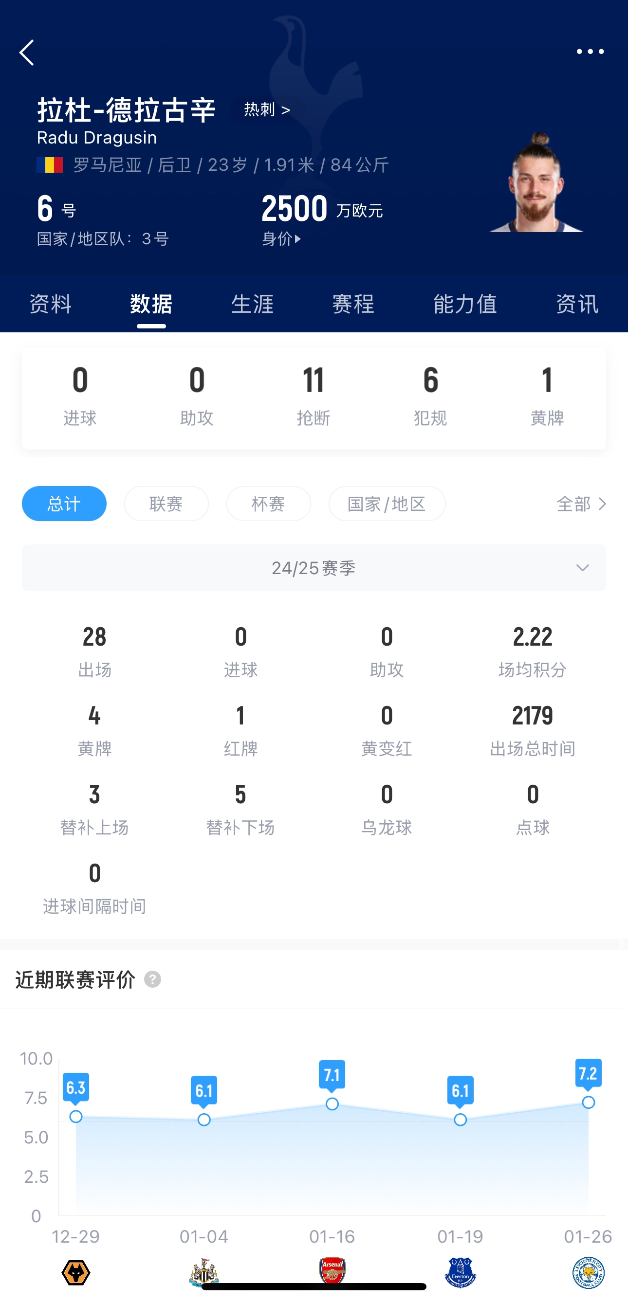 德拉古辛上賽季冬窗從熱那亞加盟熱刺,轉(zhuǎn)會費(fèi)總價3000萬歐元,有報道稱,德拉古辛拒絕了拜仁的邀請選擇了熱刺。