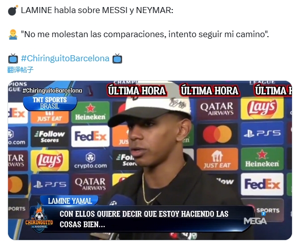3月12日訊 歐冠1/8決賽次回合,巴薩3-1戰(zhàn)勝本菲卡,總比分4-1晉級(jí)。賽后在接受采訪時(shí),亞馬爾被問到自己和梅西、內(nèi)馬爾的對(duì)比一事。