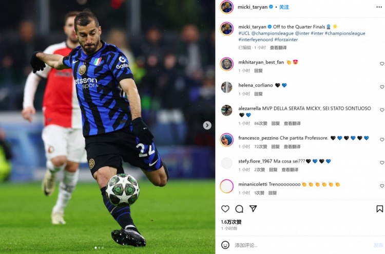 3月12日訊 國米在本輪歐冠主場2-1再次擊敗費耶諾德,他們將在歐冠八強戰(zhàn)和拜仁相遇。隊內(nèi)多位大將也通過社媒曬照慶祝晉級。
