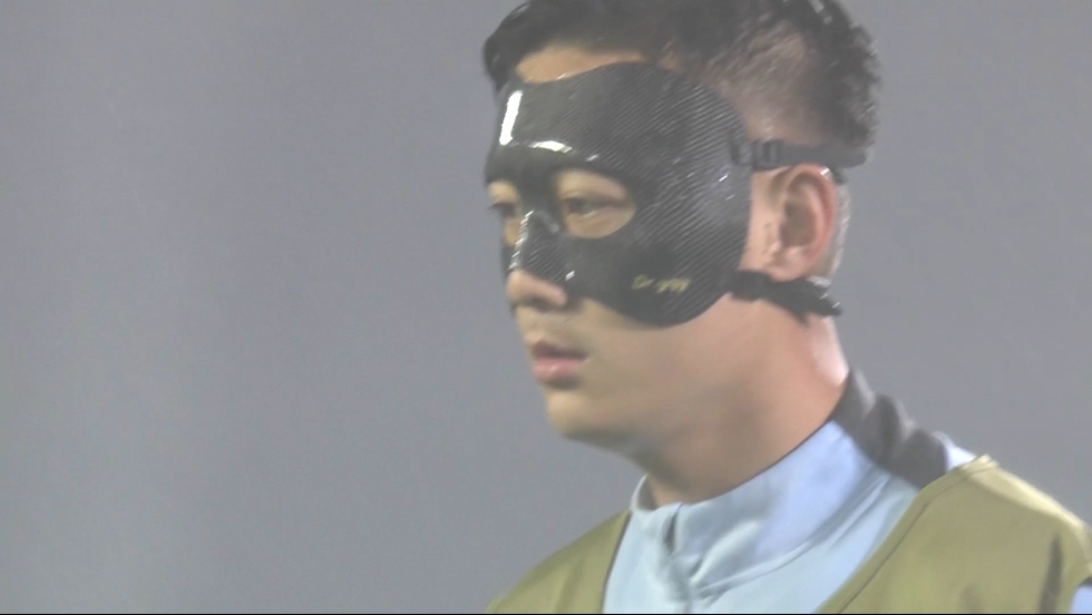 此前未佩戴!蔣圣龍亞冠賽前熱身戴上面具,曾在月初比賽面部受傷