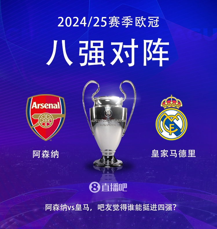 2024-25賽季歐冠1/4決賽,阿森納將對陣皇馬。
