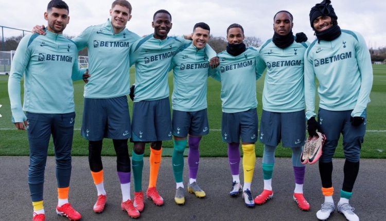 3月13日訊 熱刺官網(wǎng)消息,在周三的訓(xùn)練中,男女足一線隊球員都穿著色彩鮮艷、左右腳不同顏色的襪子,以支持唐氏綜合癥患者。