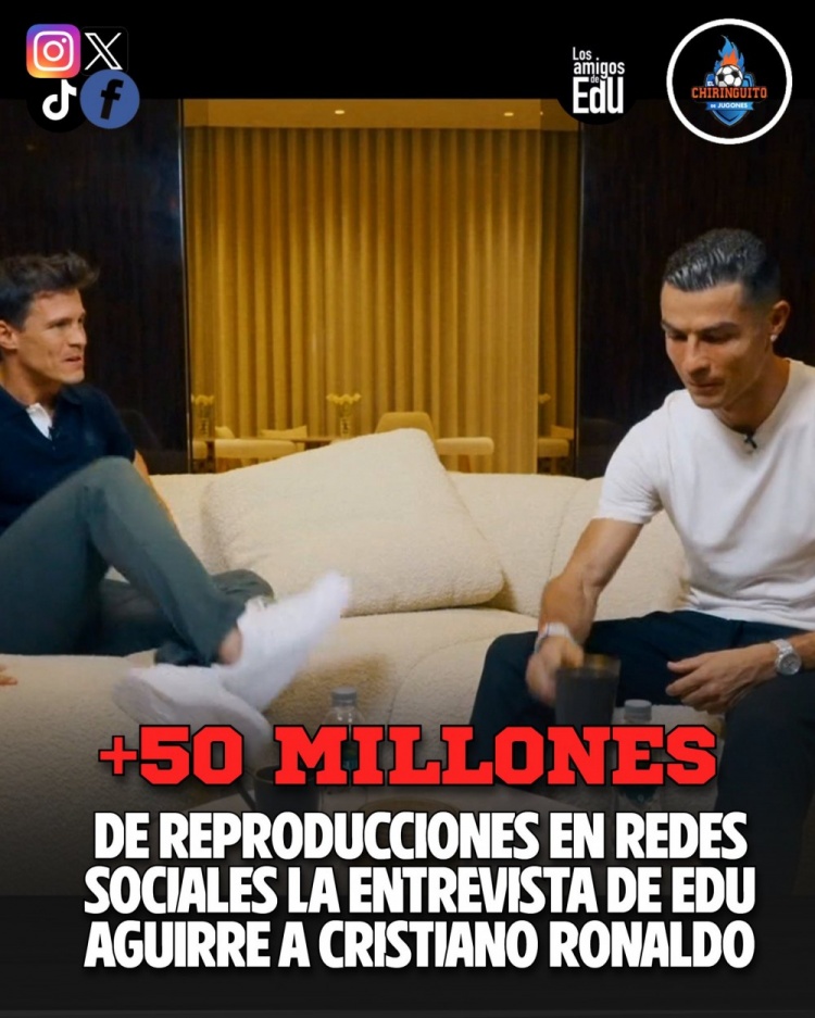 C羅接受西班牙六臺(tái)記者愛(ài)德華多-阿吉雷的專訪,西班牙六臺(tái)指出,這次專訪的視頻在各個(gè)社交平臺(tái)的點(diǎn)擊量已經(jīng)突破5000萬(wàn)。