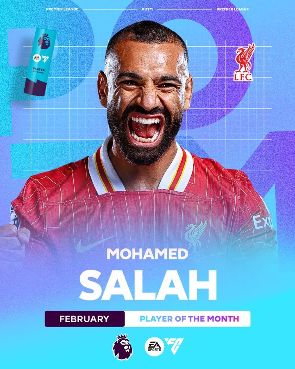 03月14日訊 英超官方公布2月份最佳球員,利物浦前鋒薩拉赫成功當選。在2月的6場英超比賽中,薩拉赫貢獻6粒進球和4次助攻。