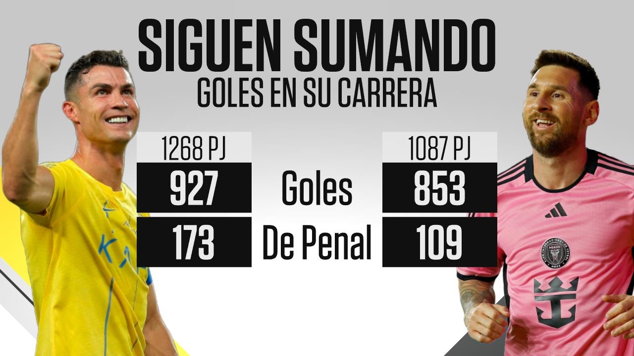 C羅生涯至今出戰(zhàn)1268場,打進(jìn)927球,其中173球?yàn)辄c(diǎn)球;梅西生涯至今出戰(zhàn)1087場,打進(jìn)853球,其中109球?yàn)辄c(diǎn)球。