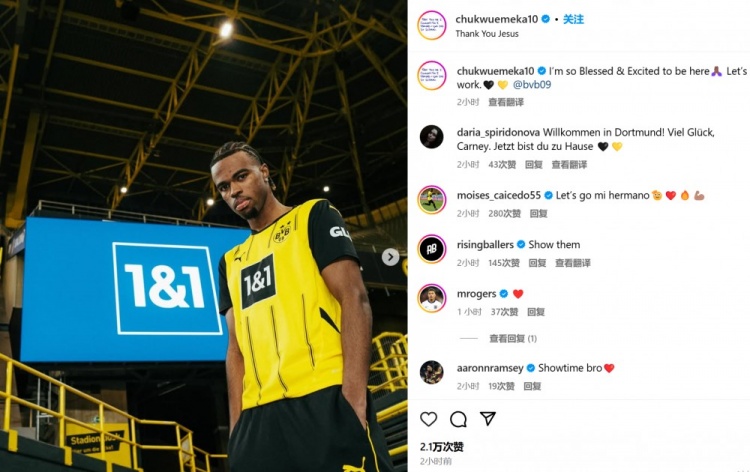 楚克烏梅卡通過社媒曬出自己身穿多特球衣現(xiàn)身威斯特法倫球場(chǎng)的照片,并表示:“能夠來(lái)到這里,我感到非常榮幸與激動(dòng)。讓我們開始努力吧!@多特蒙德俱樂部?!?/p>