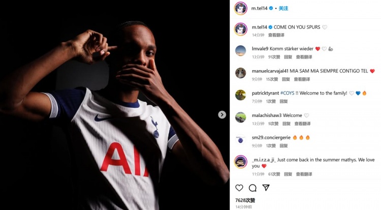 特爾在今日通過社媒曬出自己的定妝照,并配文:“熱刺加油!(COYS)”。據(jù)悉列維專程飛赴慕尼黑游說這位法國小將,并且為租借5個月而支付了高達1000萬歐租借費。