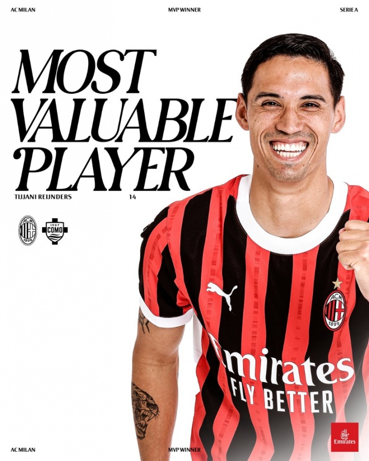賽后,AC米蘭俱樂部官方宣布,賴因德斯當(dāng)選為本場比賽隊內(nèi)最佳球員。