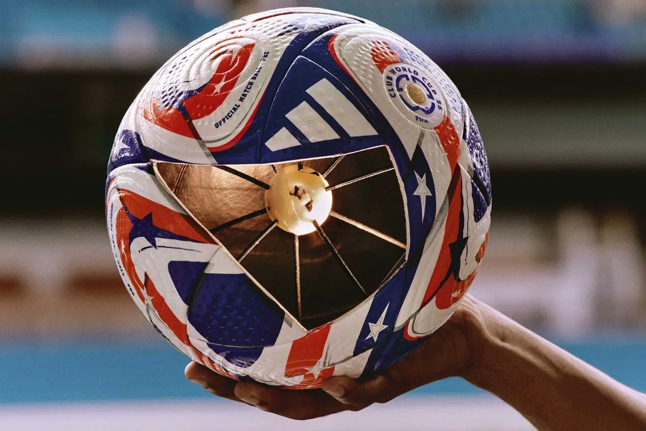 這款足球將在世俱杯期間的比賽中使用,顏色采用白色、藍色和紅色,底色為珍珠白。