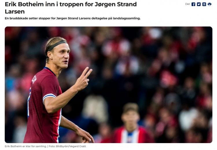 3月17日訊 官方消息,狼隊前鋒拉爾森因骨折退出本期國家隊,挪威補招25歲馬爾默前鋒埃里克-博特海姆。