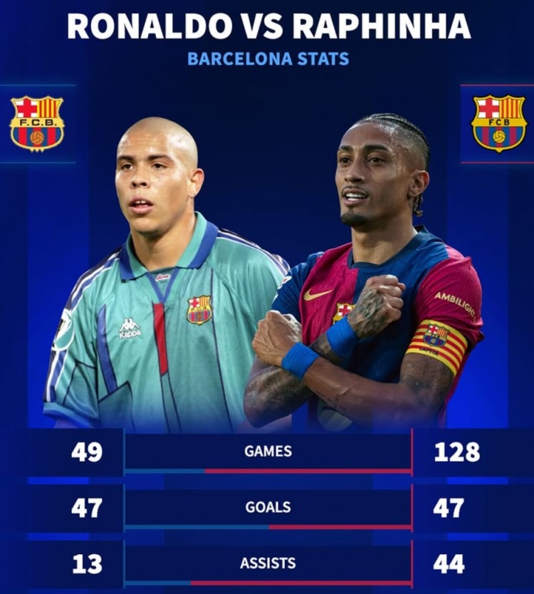 數據統計顯示,在本場比賽之前,拉菲尼亞就已經為巴薩出戰(zhàn)128場比賽貢獻47球44助攻。