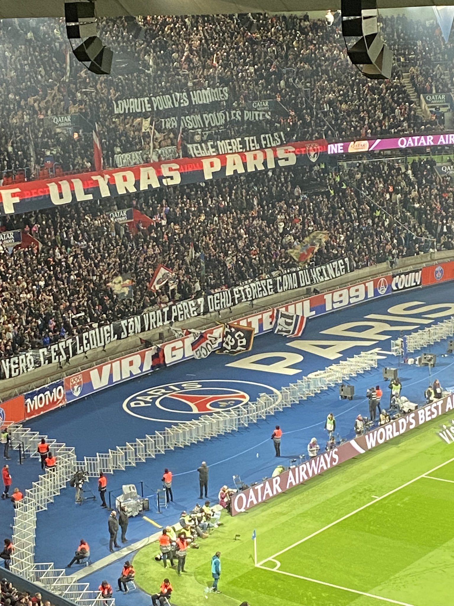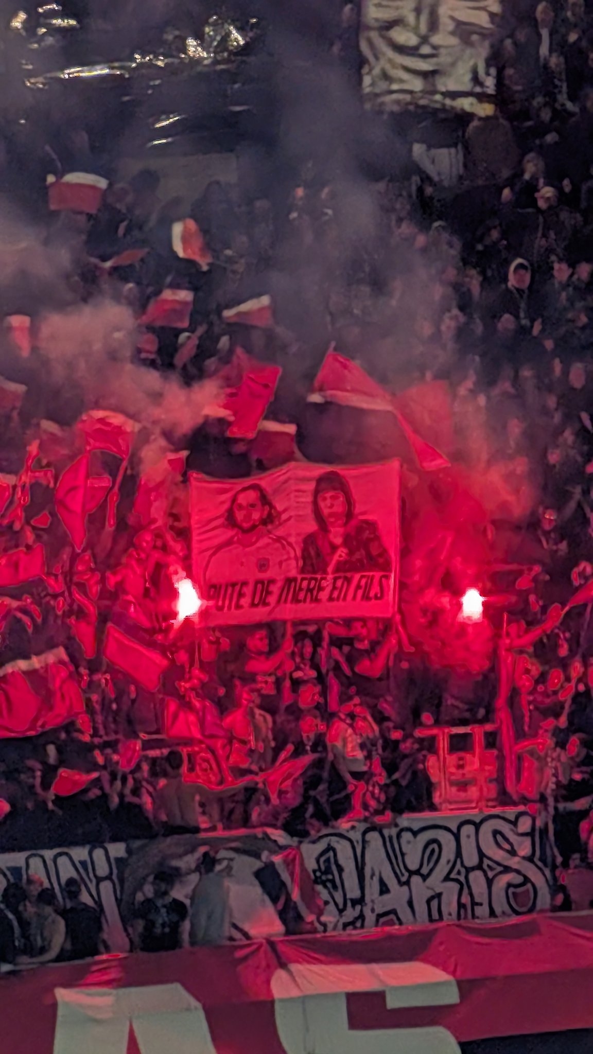 本場比賽巴黎球迷拉出橫幅批拉比奧特,橫幅上寫道:忠誠屬于男人,背叛屬于婊子,有其母必有其子。