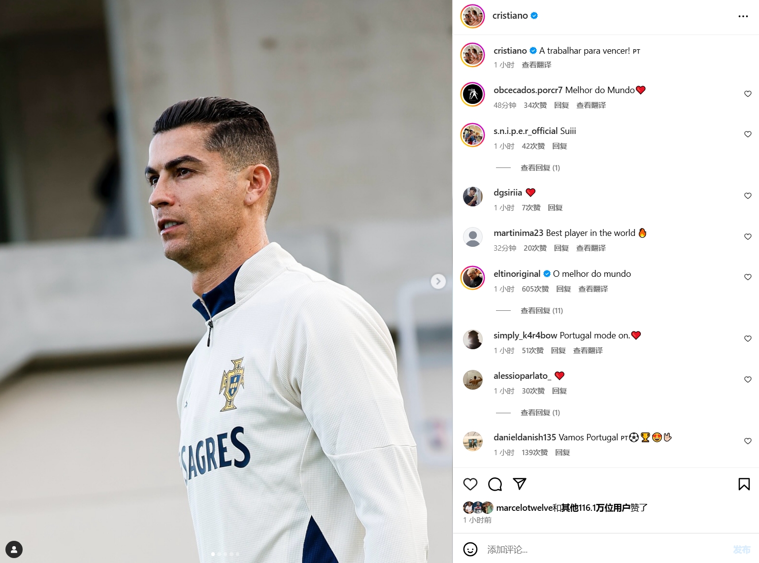 3月19日訊 不久前,正在葡萄牙國家隊備戰(zhàn)的C羅更新了社交媒體。