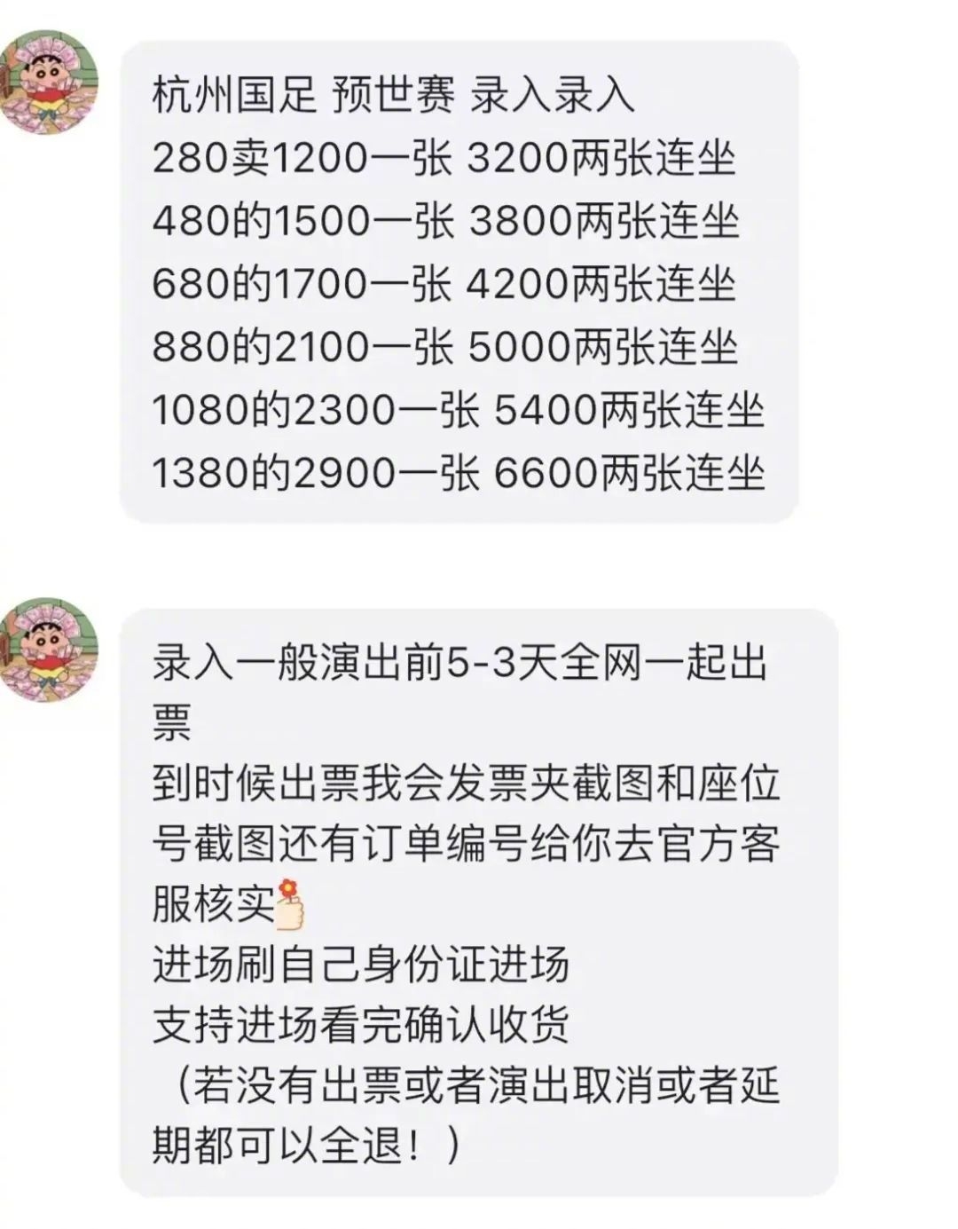 3月10日,中國新聞周刊聯(lián)系上某賣家,并提出希望求購3月25日國足球票,賣家表示,自己手中還有部分存票。每張加價1000—1500元不等。但到了3月18日,這個價格再次攀升,票面價格1380元的球票需要支付6500元方可購買,而如果需要連號球票或是位置更佳座位,價格將達到近萬元。