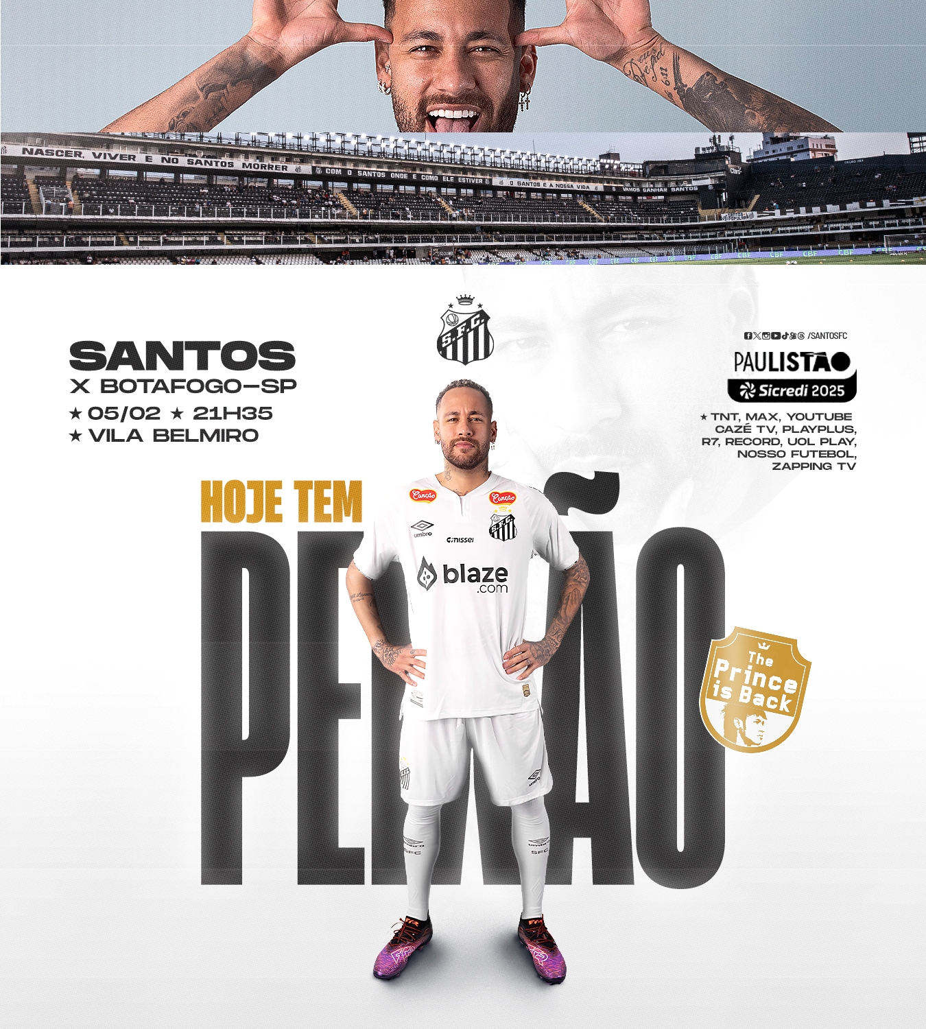 官方:內(nèi)馬爾將在明早8:35上演回歸首秀,桑托斯vs博塔弗戈SP