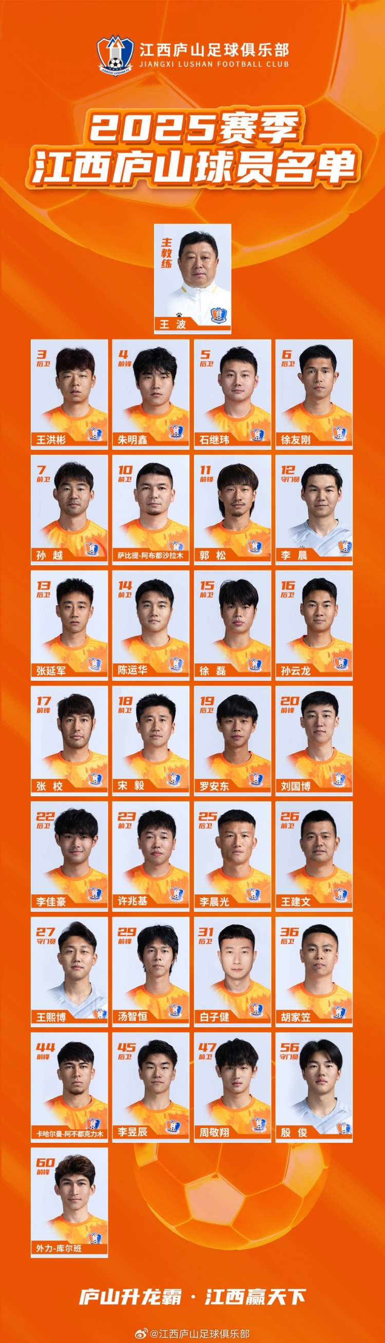 江西廬山足球俱樂部2025賽季球員大名單