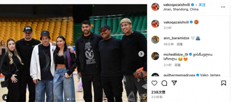 昨日山東泰山外援卡扎伊什維利更新社媒,曬出自己和家人朋友在濟(jì)南現(xiàn)場(chǎng)觀看CBA常規(guī)賽山東vs廣州的比賽,賽前他還秀了一把籃球技巧,罰籃空心入網(wǎng)。
