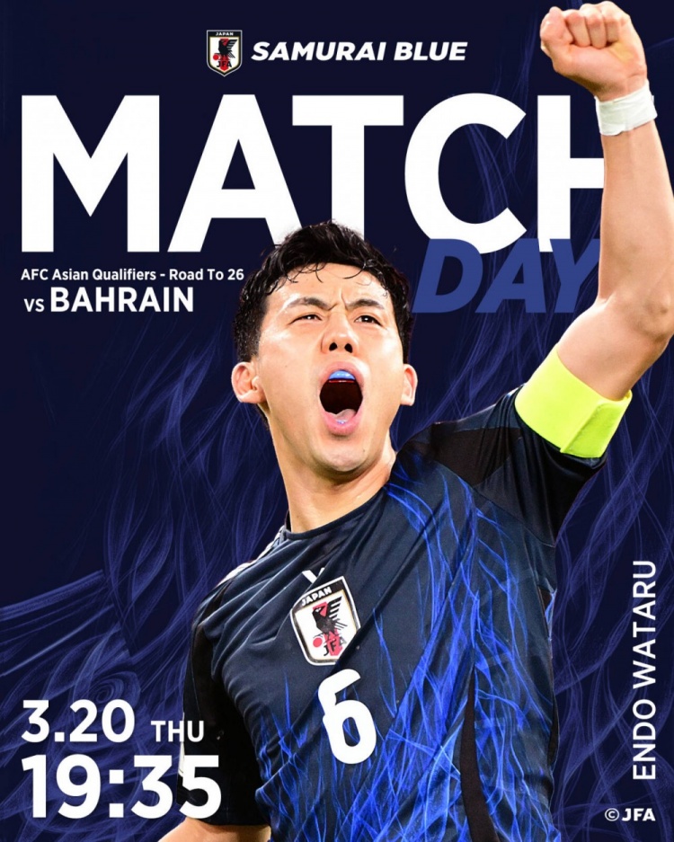 今日日本國家隊官推公布了本場比賽的海報,隊長遠(yuǎn)藤航獨自入鏡,海報中他振臂高呼,志在為球隊帶來勝利。日本隊官推為海報配文寫道:“目標(biāo)是連續(xù)出戰(zhàn)8屆世界杯,讓我們朝著這個目標(biāo),與藍(lán)武士并肩作戰(zhàn)吧!”