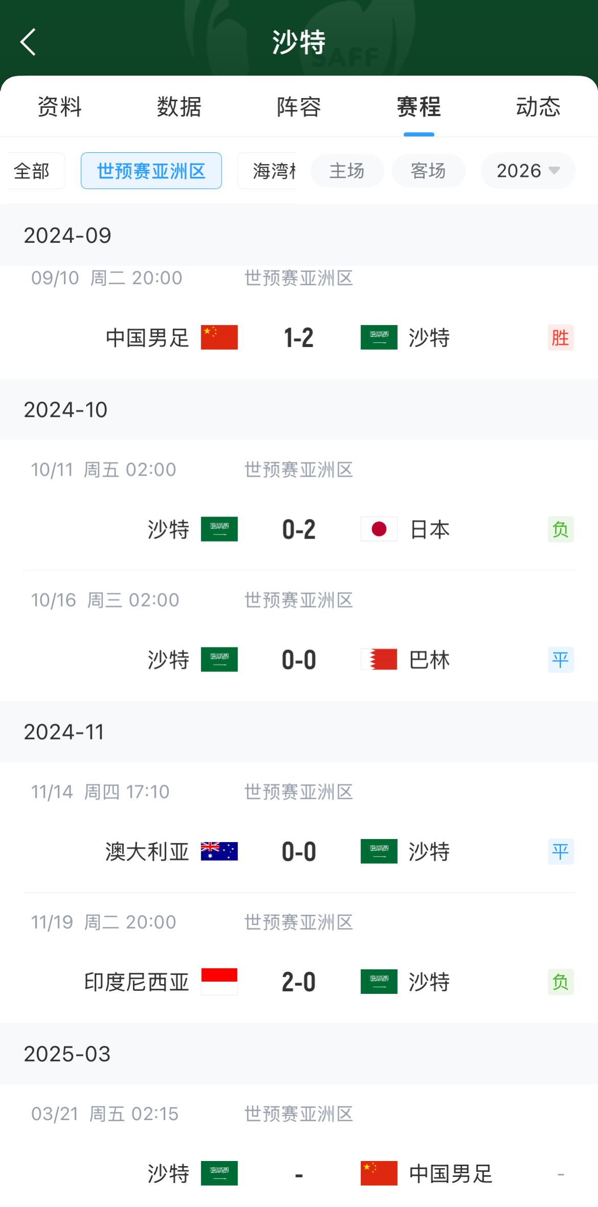 沙特隊在本屆18強賽上一個進球,還是第二輪對陣中國隊時打進,當(dāng)時哈桑-卡德什在第90分鐘打入制勝一球。此后,沙特隊在連續(xù)四場比賽中未能進球,分別為對陣日本、巴林、澳大利亞和印度尼西亞,總計360分鐘。盡管沙特隊在這四場比賽中完成了52次射門,平均每場13次,但始終未能攻破對手的球門。