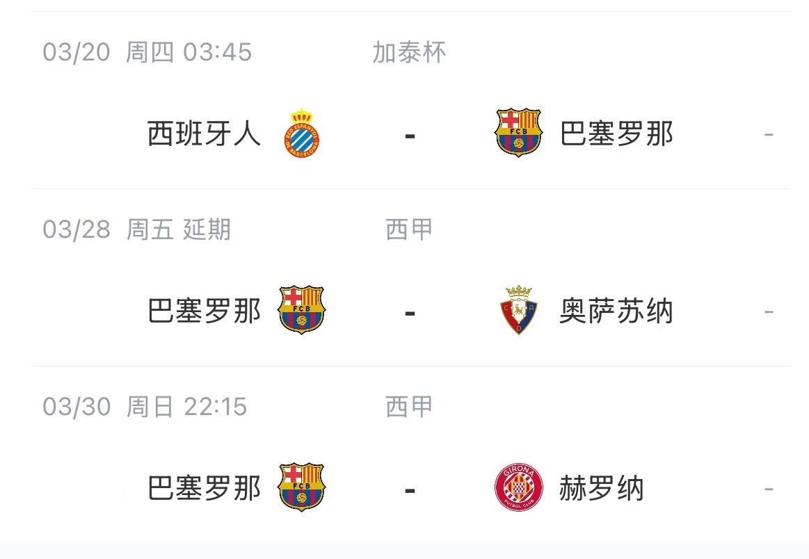 03月20日訊 西足協(xié)官方發(fā)布公告,巴薩與奧薩蘇納的上訴被駁回,比賽仍于3月27日舉行。而奧薩蘇納vs畢爾巴鄂的比賽將被安排至30日進(jìn)行。