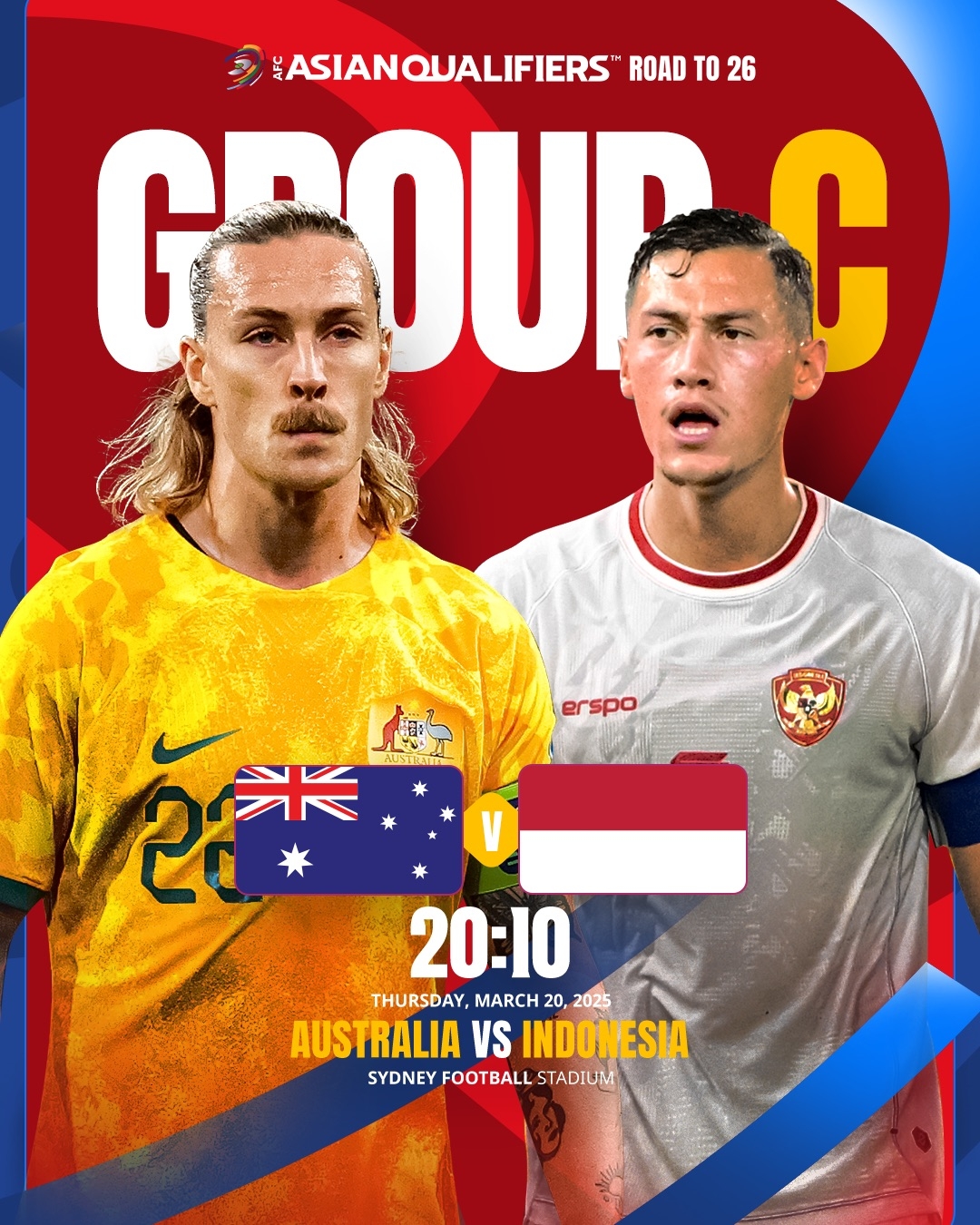 03月20日訊 北京時間今日17點10分,世預賽亞洲區(qū)第三階段C組第7輪,澳大利亞vs印尼,賽前首發(fā)陣容公布。