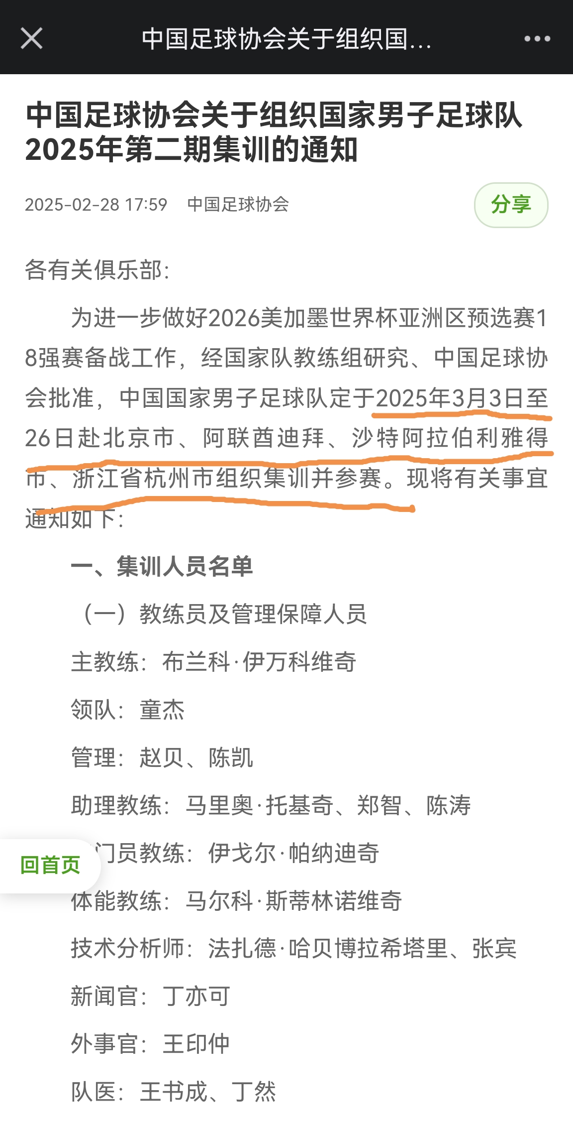 中國足協(xié)在公告中明確指出將進(jìn)行為期23天的集訓(xùn)+參賽