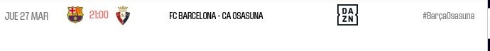 3月21日訊 西甲官方確認(rèn),巴薩對陣奧薩蘇納的第27輪補(bǔ)賽將于北京時間3月28日凌晨4:00舉行。