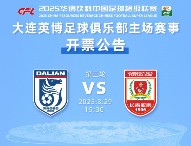 3月21日訊 經(jīng)過前兩輪的客場作戰(zhàn)后,大連英博將在中超第3輪迎來新賽季主場首戰(zhàn),對手是長春亞泰。英博俱樂部官方宣布,本場比賽的單場球票將在下周一下午14:00正式開售。