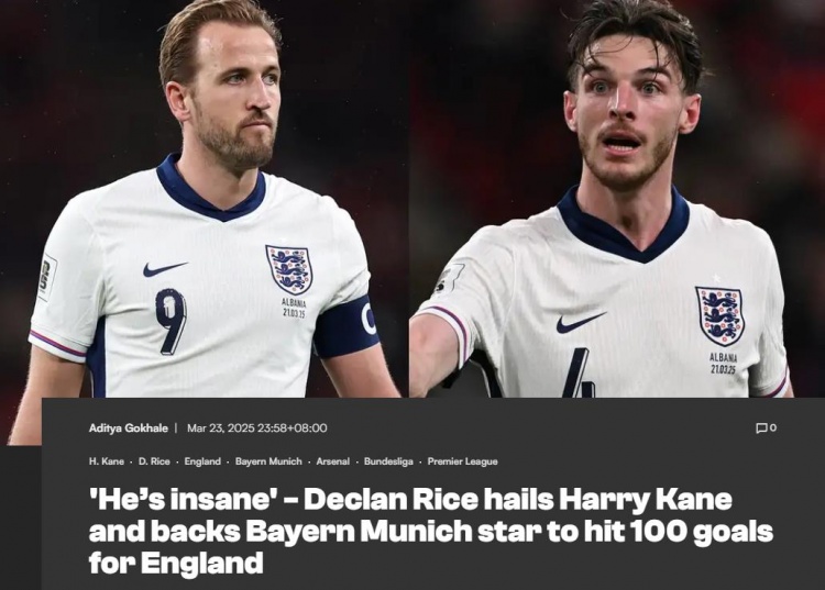 3月24日訊 英格蘭隊(duì)2-0戰(zhàn)勝阿爾巴尼亞的世預(yù)賽中,凱恩打進(jìn)了代表三獅軍團(tuán)的第70個進(jìn)球。賴斯在談到凱恩時表示,凱恩一定能夠完成國家隊(duì)百球成就。
